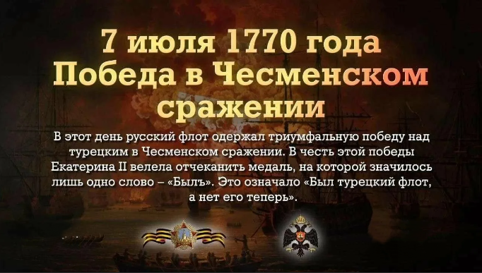 Ежегодно 7 июля в нашей стране отмечается День воинской славы России — День победы русского флота над турецким флотом в Чесменском сражении в 1770 году.
