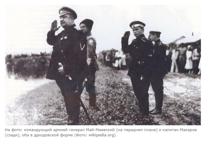 Александр Широкорад С юных лет меня удивляли советские фильмы и романы, где рабочие с четырьмя классами образования проникают в тыл врага и представляются аристократами и офицерами — от поручика до полковника. А тупые белые принимают их в свой круг. В 1969 году вышел пятисерийный художественный фильм «Адъютант его превосходительства», посвящённый первым чекистам. В фильме один из высших руководителей ЧК Лацис весной 1919 года направляет чекиста Павла Кольцова (актёр Юрий Соломин) в штаб Добровольческой армии. Там разведчик становится адъютантом командующего Добровольческой армией генерал-лейтенанта Владимира Зеноновича Ковалевского (актёр Владислав Стржельчик). Кольцов имел надёжную связь с Центром и оперативно передавал красным наисекретнейшую информацию. В конце фильма Кольцов жертвует собой, пуская под откос следовавший на фронт литерный поезд с английскими танками. В финале фильма Павел оказывается в тюрьме и ожидает казни. Следует заметить, что в фильме и чекист, и два его главных противника — командующий Ковалевский и контрразведчик Щукин — представлены умнейшими людьми, их без преувеличения можно назвать военными аналитиками. Кольцов и Ковалевский — рыцари без страха и упрёка, а Щукин — «чёрный кардинал». Это, а также обаяние Юрия Соломина, обеспечили фильму потрясающий успех. Сразу после выхода фильма на экраны его авторов удостоили звания лауреатов Государственной премии СССР. «Рыцари пера» возликовали и срочно оживили «Гаврилу», то есть Павла Кольцова. И пошли «Гаврилиады». В восьми книгах «Гаврила» оказывается то у Махно, то у Врангеля в Константинополе, а затем в Париже. Авторы повести, фильма и последующих «Гаврилиад» дружно утверждают, что «образ Кольцова не имеет прототипа. Он собирательный». Да вот беда, в 1927 году в Ленинграде вышла книга воспоминаний Павла Макарова «Адъютант генерала Май-Маевского». За два года она выдержала пять (!) изданий. А в 1969 году Павел Макаров увидел себя в «Адъютанте его превосходительства» — в фильм были вмонтированы кадры хроники, где Макаров стоял за спиной генерала Май-Маевского. Вот вам и «собирательный образ» — с руками-ногами и орденами «Красного Знамени» и «Красной Звезды». Павел с детства жил в нищете. Его отец — кондуктор товарных поездов Сызрань-Вяземской железной дороги — погиб в 1903 году при крушении поезда. Павел был вынужден рано начать работать, в том числе наборщиком в типографии. Образование у Макарова было неважное — он экстерном (!) окончил 4 класса реального училища. И как такой персонаж мог стать адъютантом самого командующего Добровольческой армии? Мог. Офицеры корпуса Добровольческой армии состояли не из детей аристократов, а на 80% из прапорщиков военного времени, по культурному и образовательному уровню мало отличавшихся от Павла. Поскольку Россия к 1914 году была более чем на 70% неграмотной, парней, годных к строевой и имевших 4 класса училища или ЦПШ, забирали в школы прапорщиков. Павел окончил Тифлисскую школу прапорщиков в январе 1917 года. Ну а далее его направили в 134-й Феодосийский полк на Румынский фронт. Командир 5-й роты был убит, Макаров заменил его и получил звание поручика. Осенью 1917 года Макаров дезертировал. В марте 1918 года в Мелитополе Павел Васильевич был арестован офицерами Дроздовского полка. Деваться было некуда, и Макаров по-военному д