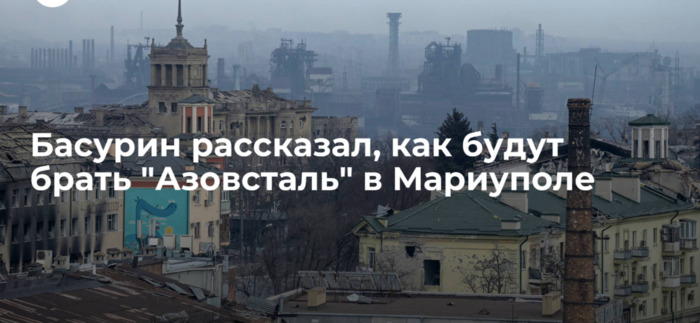 Басурин рассказал, как будут брать «Азовсталь» в Мариуполе