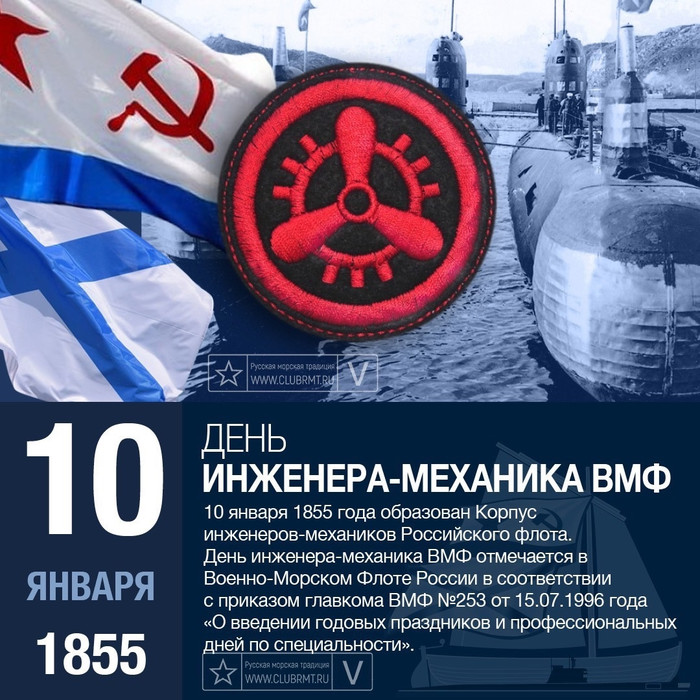 История военно-морской инженерно-механической службы ведёт своё начало с середины 19 века (Фото: mil.ru, по лицензии CC BY 4.0) В 1996 году Главнокомандующим ВМФ России была установлена праздничная дата чествования инженеров-механиков военно-морского флота РФ. Свой профессиональный праздник они отмечают 10 января. История военно-морской инженерно-механической службы ведёт своё начало с середины 19 века, когда подходила к концу эпоха парусного флота, и начался переход к флоту паровому. На парусных кораблях начали устанавливать паровые машины, требовавшие грамотного технического обслуживания. Машинное отделение превратилось в сердце корабля, и от его работоспособности зависела жизнь судна и экипажа, а также успешное выполнение боевых и повседневных задач. В 1854 году, благодаря инициативе Начальника Главного Морского Штаба А.С. Меншикова, в Российском императорском флоте Указом императора Николая I от (29 декабря 1854) 10 января 1855 года был образован Корпус инженеров-механиков морского ведомства. С тех пор эта дата считается Днём флотского инженера-механика. К этому моменту на флоте уже имелись корабли с паровыми машинами. Первым таким военным кораблём стал «Метеор», заложенный ещё в 1823 году. До образования специального учебного заведения механики проходили обучение в кондукторских ротах Учебного рабочего морского экипажа. Учреждалось и должностное звание: инженер-механик морского ведомства. С 1872 года Корпус начали комплектовать выпускниками механического отделения Кронштадтского Технического училища Морского ведомства. До того момента оно именовалось Инженерным училищем Морского ведомства. В дальнейшем судовые машины и механизмы совершенствовались и усложнялись, требуя соответствующего уровня знаний и навыков у обслуживающих их специалистов. В 1905 году в ходе морских реформ для инженер-механиков флота были введены общевойсковые звания, а в 1913 году – флотские чины с добавлением приставки «инженер-механик». Подготовкой инженер-механиков для военно-морского флота в советский период занималось Морское инженерное училище. Это было всё то же учебное заведение, которое в сентябре 1917 года переехало из Кронштадта в Петроград. В 1927 году оно было переименовано в Военно-морское инженерное училище имени Ф.Э. Дзержинского, спустя 3 года причислено к высшим учебным заведениям, а в 1939 году приставка Высшее стала официальной в наименовании. Фактически, до начала Великой Отечественной войны это училище оставалось единственной кузницей инженерных кадров для военно-морского флота в Советском Союзе. В послевоенные годы это училище приняло участие в формировании новых военно-морских инженерных учебных заведений в Пушкине и Севастополе. В 1998 году на базе ВВМИУ им. Ф.Э. Дзержинского и ЛВВМИУ им. В.И. Ленина (г. Пушкин) был образован Военно-Морской Инженерный институт. В 2012 году произошло его объединение с Военно-Морским институтом радиоэлектроники им. А.С. Попова, после чего наименование его стало: Федеральное государственное образовательное учреждение Военный институт (Военно-морской политехнический) филиал ФГКВОУ ВПО «Военный учебно-научный центр ВМФ «Военно-морская академия имени Адмирала Флота Советского Союза Н. Г. Кузнецова». Несмотря на то, что первое время инженеры-механики воспринимались на флоте остальным офицерским составом как ра