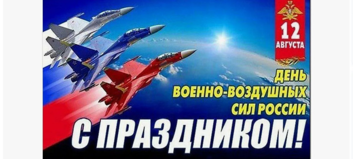 ТЕЛЕГРАММ замедляется.Вероятно скоро его заблокируют.Чтобы не потерять нас и получать оперативно информаци. подпишись на наши каналы в МАХ.Кто еще не подписался В полностью Российской сети МАХ на каналы ВОЕННЫЕ ПЕНСИОНЕРЫ ЗА РОССИЮ И ЕЕ ВООРУЖЕННЫЕ СИЛЫ: Канал для Военных пенсионерах без войны и политики, Военных пенсиях,пенсиях жен военных пенсионеров ,жизни военных пенсионеров и о способах прожить дольше : https://max.ru/voennyepen За Родину .Мы победим.: Оперативная информация О Спецоперации ,политике на канале: https://max.ru/join/aXh9SdoNhgk2rhy901ENolzCyoGLJhMgpon7E6np9n0 СРОЧНО ПОДПИСЫВАЙСЯ и ты будешь в курсе оперативных событий.НЕ пропусти!!! В Телеграмм создана группа " Военные пенсионеры за Россию и ее ВС. Мы победим". У кого есть Телеграмм просим вступить в нее. Там много интересного, срочного, очень оперативная информация, а также чего нельзя помещать в ОДНОКЛАССНИКАХ и на сайте. Вступить можно по ссылке: Военные пенсионеры за Россию и ее ВС. Мы победим "https://t.me/voenpenszaRossiu" Очень большая просьба НЕ ОТПИСЫВАТЬСЯ ОТ КАНАЛА, Канал работает в тестовом режиме. Мы стараемся понять, что Вам будет интересно читать и как работать дальше. Пишите, что бы Вам хотелось читать в ТЕЛЕГРАММ. Хоть в любой теме на сайте, хоть в Телеграмм. Чтобы не раздражали уведомления их можно ОТКЛЮЧИТЬ. Кого раздражают уведомления в Телеграмм их можно отключить. Отключить уведомления можно нажав на надпись ОТКЛЮЧИТЬ УВЕДОМЛЕНИЯ внизу День Военно-воздушных сил в 2025 году: суть, история и традиции Россияне отмечают День Военно-воздушных сил Сегодня, 12 августа, отмечается День Военно-воздушных сил (ВВС) России. За более чем вековую историю российские ВВС прошли путь от аэропланов до сверхзвуковых истребителей пятого поколения. «Лента.ру» рассказывает об истории и традициях Дня ВВС, а также вспоминает путь развития военной авиации в России. Дата Дня ВВС История ВВС России Традиции Дня ВВС Кого поздравляют Идеи поздравлений Идеи для подарков Дата Дня ВВС Праздник посвящен роду войск, который ведет свою историю с начала XX века: именно 12 августа (по новому стилю) 1912 года вопросы авиации были переданы в ведомство специального органа — Воздухоплавательной части Главного управления Генерального штаба. Эта дата считается днем образования военной авиации в России, поэтому современный праздник приурочен именно к ней. Несмотря на то что Военно-воздушные силы — один из наиболее передовых и стратегически важных родов войск, выходной день в честь 12 августа не предусмотрен. Солдаты и офицеры отмечают его на службе, ведь в 2025 году В Советском Союзе День ВВС не отмечали, праздновали только День воздушного флота — он существует и сейчас, но посвящен в основном гражданской авиации. А вот День Военно-воздушных сил впервые в 1997-м ввел президент России Борис Ельцин, а затем в 2006 году закрепил в своем указе Владимир Путин. С тех пор День ВВС отмечают 12 августа, а День воздушного флота — 17 августа. Традиционно в честь Дня ВВС в регионах России проходят авиафестивали, воздушные парады и выставки История ВВС России Военно-воздушные силы Российской Федерации — это род войск в составе Воздушно-космических сил (ВКС). Командует ими генерал-лейтенант Сергей Кобылаш. Военный воздушный флот появился в России еще в имперские времена. О том, что воздушные суда можно задействовать на фронте, впервые задумались в 1869 году, между 