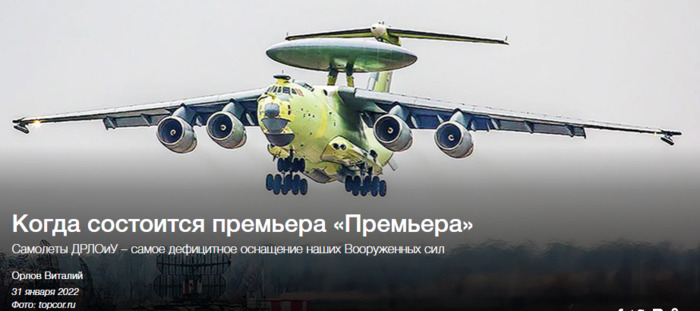 Орлов Виталий Осень 2017 года ознаменовалась историческим событием в летописи Воздушно-космических сил России. 18 ноября состоялась долгожданная воздушная премьера – первый полет А-100 «Премьер». Именно такое название получил новый «летающий радар» на базе Ил-76МД-90А или самый перспективный из самолетов дальнего радиолокационного обнаружения и управления (ДРЛОиУ). В ходе первого полета проверялись не только аэродинамические характеристики «Премьера», но и функционирование целевой аппаратуры и авионики. Зачем ВКС России «Премьер» Это многофункциональный авиационный комплекс радиолокационного дозора и наведения А-100 или МАК РЛДиН. Функциональные задачи машины не ограничиваются тривиальным обнаружением целей противника и управлением своими бортами. «Премьер» способен функционировать в качестве комплекса радиоэлектронной борьбы и вести эффективную радиотехническую разведку. С большинства тактических и технических характеристик А-100 гриф «Секретно» не снят до сих пор, но в открытых источниках появилась интересная информация. Согласно ей перспективный российский комплекс ДРЛОиУ вооружен двухдиапазонным локатором, оснащенным активной фазированной антенной решеткой. А специальное радиотехническое оборудование «Премьера» способно в минимальные сроки наращивать радиолокационное поле на заданном операционном направлении. Функциональные возможности А-100 «Премьер» включают: “Отечественные технологии, используемые в производстве электроники, устарели и отстают от западного уровня не менее чем на 10 лет. Поэтому процесс пересадки радиолокационного комплекса А-100 на родные, отечественные чипы столкнулся с серьезными сложностями” обнаружение и последующее сопровождение большого количества (до 300) воздушных, наземных и морских целей; получение информации как со своего радара, так и от космических спутников; управление беспилотными летательными аппаратами; ведение эффективной и стабильной радиоэлектронной борьбы при помощи бортовой аппаратуры. По информации отдельных источников, «Премьер» способен обнаруживать цель типа «истребитель» на дальности до 600 километров. Эти же источники сообщают о заметном росте эффективности выявления малозаметных целей, поскольку современная элементная база в сочетании с имеющимися вычислительными мощностями позволяет максимально автоматизировать и в то же время упростить процесс практического применения. Полезная нагрузка самолета А-100 «Премьер» смонтирована на базе Ил-76МД-90 (90А) или «Изделия 476» – модернизированной, а в случае с 90А – глубоко модернизированной версии основного транспортного самолета ВКС России. Ключевой задачей первого испытательного полета стала проверка новых аэродинамических характеристик машины (локатор-гриб значительно меняет их значения, причем далеко не в лучшую сторону). Начало серийных поставок многофункционального авиационного комплекса А-100 «Премьер» планировалось осуществить уже в 2020 году. Эту информацию озвучил российский министр обороны генерал армии Сергей Шойгу на одном из селекторных совещаний с руководством ВКС России и профильными специалистами. Он заверил, что работы ведутся в полном соответствии с установленным графиком. Летающая лаборатория, участвующая в серии испытаний, совершила несколько контрольных полетов. А до конца п