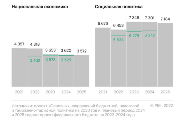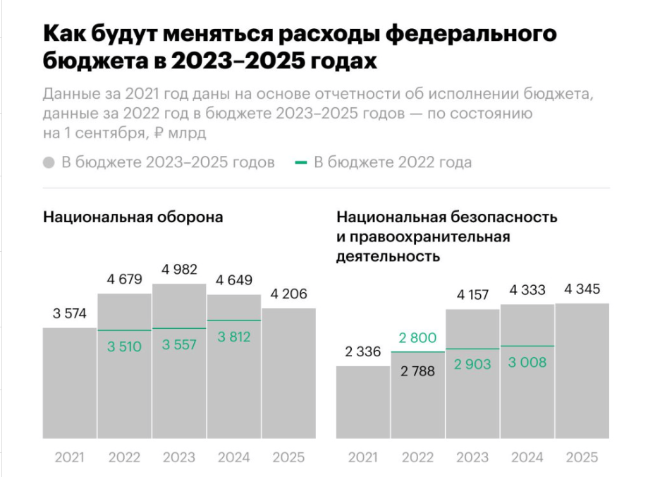 Размер индексации довольствия военнослужащих в 2023 году запланирован на уровне 10,5%, что почти в два раза превысит индексацию зарплат чиновников. Расходы федерального бюджета на силовой блок в следующем году вырастут на 22% Правительство закладывает на 2023 год повышение оплаты труда военнослужащих и силовиков на 10,5%, что превосходит планируемую индексацию для гражданских госслужащих. Это следует из материалов к проекту федерального бюджета на следующую трехлетку, которые есть в распоряжении РБК (подлинность документа подтвердил источник, близкий к правительству). Зарплаты работников федеральных государственных учреждений, федеральных государственных гражданских служащих и других категорий работников федеральных государственных органов, а также судей, прокурорских работников и сотрудников Следственного комитета планируется в 2023 году поднять на 5,5%, в 2024 и 2025 годах — на 4%. Это соответствует ожидаемым уровням инфляции на эти годы (согласно прогнозу Минэкономразвития). Для военнослужащих и «приравненных к ним лиц» предусмотрено повышение в 2023 году на 10,5%, в следующие два года — на 4%. К военнослужащим по закону приравнены сотрудники органов внутренних дел, Росгвардии, ФСИН, ФСБ, ФСО и Службы внешней разведки. Тот факт, что власти запланировали темпы индексации довольствия военнослужащих, почти в два раза превышающие индексацию зарплат чиновников, несколько нетипичен, говорит директор Центра региональной политики РАНХиГС Владимир Климанов. И у госслужащих, и у военных индексация окладов проходит с 1 октября. Как повышают оклады военным и чиновникам в последние годы 1 октября 2022 года довольствие военнослужащих и силовиков будет повышено на 4%, что было определено еще в прошлом бюджетном цикле, когда инфляция прогнозировалась на уровне целевого ориентира ЦБ. Однако в этом году потребительские цены вырастут на 12,4%, ожидает Минэкономразвития. Таким образом, оплата труда военных должна снизиться в реальном выражении. Государство ориентируется на прогнозный, а не фактический уровень инфляции. После того как в 2012 году военным резко (в 2,5–3 раза) было повышено денежное довольствие (а военные пенсии — в 1,5–1,7 раза), шесть лет оплату труда им не индексировали, а в последующие годы поднимали на 3,7–4% в соответствии с прогнозируемой инфляцией. С 2012 года лишь раз оклады военных росли сильнее, чем у чиновников, — в 2021 году правительство пропустило ежегодную индексацию зарплат госслужащих и сотрудников федеральных госорганов в связи с необходимостью бюджетной экономии в пандемию. В том же году военным и приравненным к ним лицам подняли оклады на 3,7%, а также перечисляли единовременную выплату в размере 15 тыс. руб. Еще летом 2022 года Минфин планировал индексацию денежного довольствия военнослужащих в 2023 году на уровне 6,1% в соответствии с прогнозными темпами инфляции, писал РБК. Еще раньше, осенью 2021 года, по поручению президента Владимира Путина были предложены поправки в бюджет 2022–2024 годов, подразумевавшие увеличение денежного довольствия военнослужащих дополнительно на 5% сверх уровня инфляции с 1 октября 2023 года. Тогда предполагалось, что общий размер индексации для военных достигнет 9%. Общие расходы бюджета на оплату труда военнослужащих и приравненных к ним лиц на 2023 год неизвестны. В 2022 году в открытой части бюджета закладывались