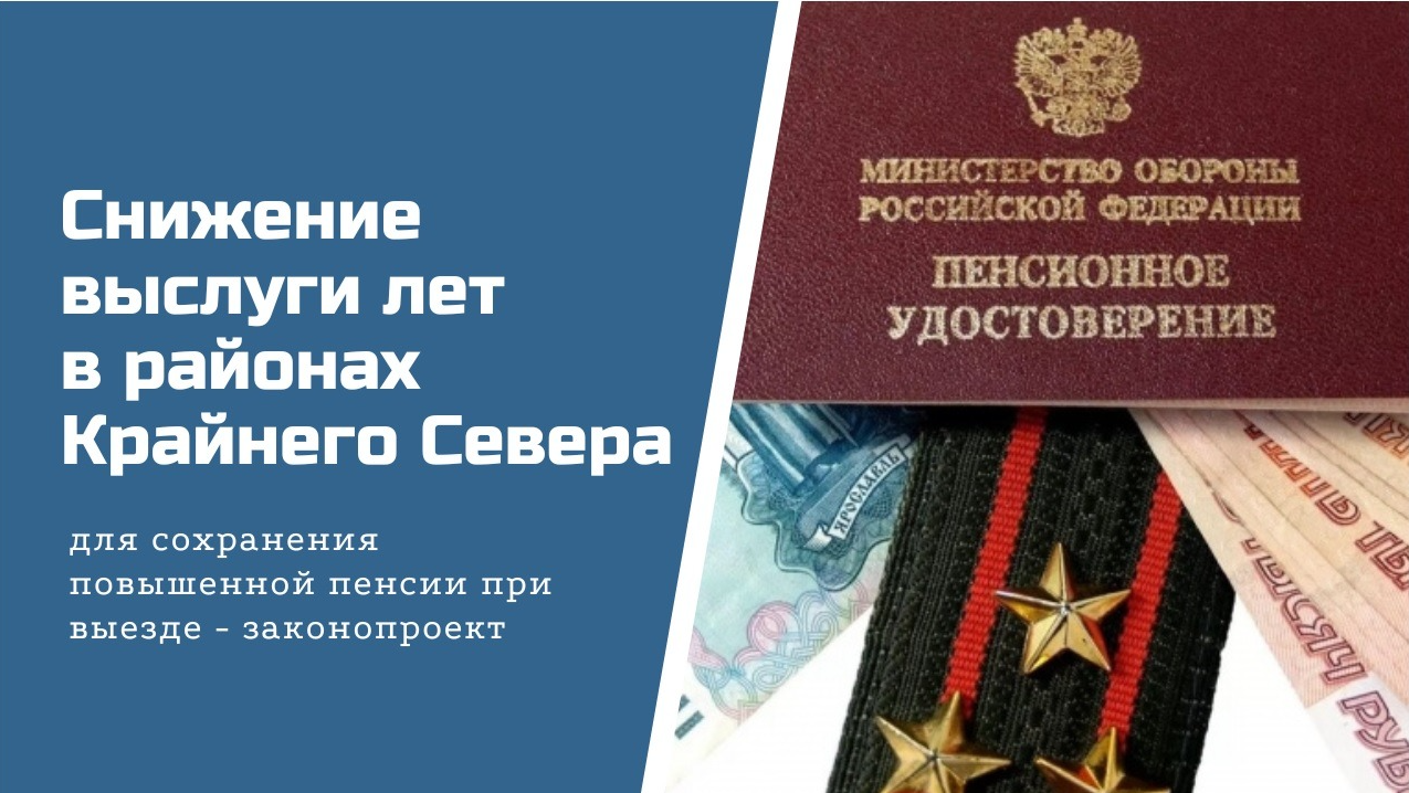 В госдуму внесен законопроект о снижение выслуги лет в районах Крайнего Севера для сохранения повышенной пенсии при выезде - законопроект. А правительство - ПРОТИВ!