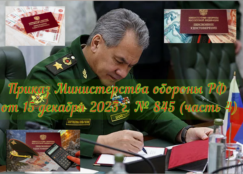 Приказ Министерства обороны РФ от 15 декабря 2023 г. № 845 “Об установлении Порядка организации работы по пенсионному обеспечению в Министерстве обороны Российской Федерации”