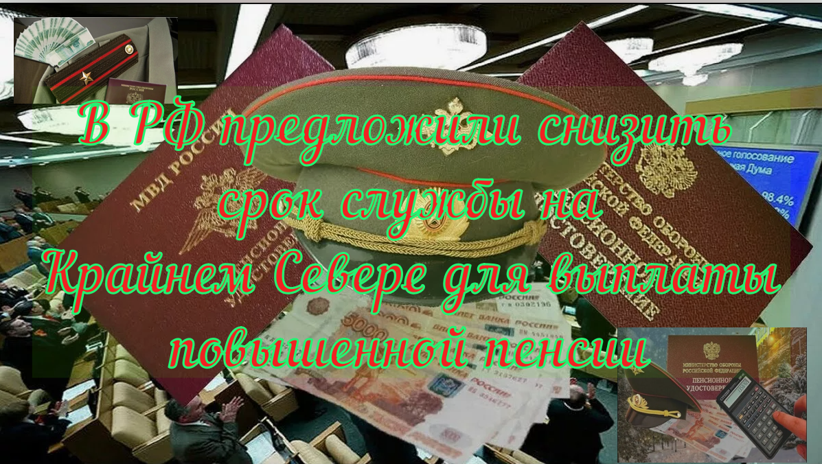 Группа депутатов от фракции ЛДПР во главе с председателем партии Леонидом Слуцким разработали законопроект, которым предлагается снизить с 15 до 6 лет необходимый срок службы военнослужащих, полицейских и бойцов Росгвардии в районах Крайнего Севера для получения ими повышенной пенсии.