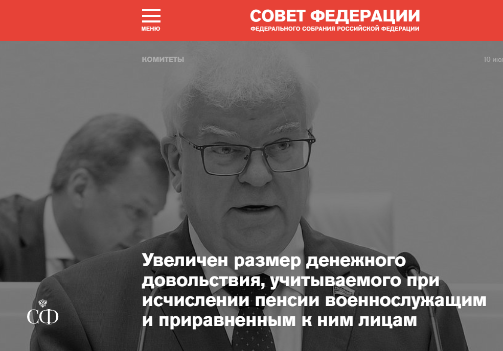 По сообщению нижней палаты парламента пенсии военным пенсионерам повысят с 1 октября 2024 года на 4,5 процента. Госдума одобрила законопроект во втором и третьем чтении.