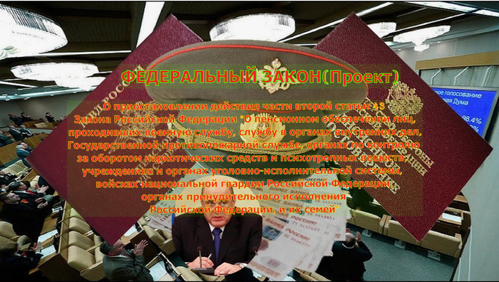 ТЕЛЕГРАММ замедляется.Вероятно скоро его заблокируют.Чтобы не потерять нас и получать оперативно информаци. подпишись на наши каналы в МАХ.Кто еще не подписался В полностью Российской сети МАХ на каналы ВОЕННЫЕ ПЕНСИОНЕРЫ ЗА РОССИЮ И ЕЕ ВООРУЖЕННЫЕ СИЛЫ: Канал для Военных пенсионерах без войны и политики, Военных пенсиях,пенсиях жен военных пенсионеров ,жизни военных пенсионеров и о способах прожить дольше : https://max.ru/voennyepen За Родину .Мы победим.: Оперативная информация О Спецоперации ,политике на канале: https://max.ru/join/aXh9SdoNhgk2rhy901ENolzCyoGLJhMgpon7E6np9n0 СРОЧНО ПОДПИСЫВАЙСЯ и ты будешь в курсе оперативных событий.НЕ пропусти!!! Вносится Правительством Российской Федерации Проект ФЕДЕРАЛЬНЫЙ ЗАКОН О приостановлении действия части второй статьи 43 Закона Российской Федерации "О пенсионном обеспечении лиц, проходивших военную службу, службу в органах внутренних дел, Государственной противопожарной службе, органах по контролю за оборотом наркотических средств и психотропных веществ, учреждениях и органах уголовно-исполнительной системы, войсках национальной гвардии Российской Федерации, органах принудительного исполнения Российской Федерации, и их семей" Статья 1 1. Приостановить до 1 января 2025 года действие части второй статьи 43 Закона Российской Федерации от 12 февраля 1993 года № 4468-I "О пенсионном обеспечении лиц, проходивших военную службу, службу в органах внутренних дел, Государственной противопожарной службе, органах по контролю за оборотом наркотических средств и психотропных веществ, учреждениях и органах уголовно-исполнительной системы, войсках национальной гвардии Российской Федерации, органах принудительного исполнения Российской Федерации, и их семей" (Ведомости Съезда народных депутатов Российской Федерации и Верховного Совета Российской Федерации, 1993, № 9, ст. 328; Собрание законодательства Российской Федерации, 1995, № 49, ст. 4693; 1998, № 30, ст. 3613; 2002, № 27, ст. 2620; № 30, ст. 3033; 2003, № 27, ст. 2700; 2007, № 49, ст. 6072; 2011, № 46, ст. 6407; 2016, № 27, ст. 4160; 2017, № 27, ст. 3951; 2019, № 18, ст. 2190; № 40, ст. 5488; 2023, № 10, ст. 1573). 2. Установить, что размер денежного довольствия, учитываемого при исчислении пенсии в соответствии со статьей 43 Закона Российской Федерации от 12 февраля 1993 года № 4468-I "О пенсионном обеспечении лиц, проходивших военную службу, службу в органах внутренних дел, Государственной противопожарной службе, органах по контролю за оборотом наркотических средств и психотропных веществ, учреждениях и органах уголовно-исполнительной системы, войсках национальной гвардии Российской Федерации, органах принудительного исполнения Российской Федерации, и их семей", с 1 января 2024 года составляет 85,47 процента, с 1 октября 2024 года - 89,32 процента от размера указанного денежного довольствия. Статья 2 Настоящий Федеральный закон вступает в силу с 1 января 2024 года. Президент Российской Федерации Кто хочет помочь сайту добровольно, перечислите деньги в сумме от 1 рубля на карту 4006800071005382 . Любая помощь в любом объеме поможет сайту выжить. Для перевода воспользуйтесь услугой Вашего банка онлайн через приложение или сходите в банк. Спасибо всем кто помогает сайту выжить !!! | |