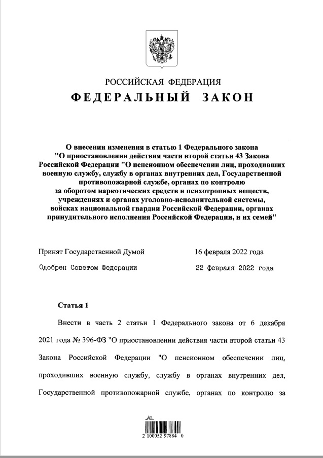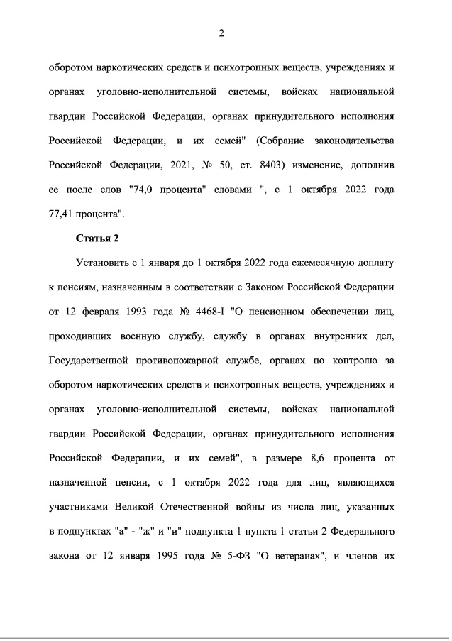 Опубликован закон закон об индексации пенсий военным пенсионерам на 8,6% с 1 января 2022 года.