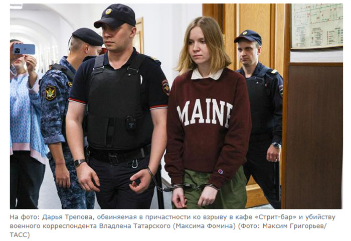 Сергей Аксенов Уголовное дело Дарьи Треповой, обвиняемой в убийстве военкора Владлена Татарского (Максима Фомина), рассмотрят на ее родине — в Петербурге на выездной сессии 2-го Западного окружного военного суда. Вердикт вынесет коллегия из трех судей. Об этом попросила сама главная обвиняемая, посчитав, что в таком случае процесс будет объективнее. А сейчас стоит прикинуть версии развития событий… Трепову обвиняют по трем статьям УК РФ: о террористическом акте (п. «б» ч. 3 ст. 205 — «деяния, повлекшие смерть человека»), незаконном обороте взрывчатых веществ (ч. 4 ст. 222.1 — «организованная группа»), об использовании заведомо поддельного документа (ч. 4 ст. 327 — «для облегчения совершения преступления») — водительского удостоверения. Будет ли суд открытый? Не факт. В деле могут быть сведения, составляющие гостайну. И всё пройдёт за закрытыми дверьми. Хотя для общественного здоровья было бы, наверное, полезно разобрать этот химически чистый случай современной власовщины публично, дотошно, вытащив на белый свет гнилое нутро пособников СБУ. Или кого там — ГУР? Если вина Треповой будет доказана, что не вызывает сомнений, с учетом того, что она почти сразу во всем призналась и «сдала» своих подельников на Украине, ей грозит от 15 до 20 лет лишения свободы. Мужчине могли бы дать и пожизненное, УК позволяет, но женщин у нас на ПЖ не сажают, значить шанс выйти однажды на свободу все-таки имеется. Она молода. Председательствовать на процессе скорее всего будет судья Тимур Жидков. За его плечами пара десятков приговоров по делам о терроризме. Карают за такое сейчас строго. Среди последних приговоров военных судов за теракты есть, например, вердикт за поджог военкомата в Екатеринбурге: 12 лет. И это только за сам факт поджога, в котором никто не погиб. В любом случае, «вилка» возможных решений на суде над Треповой очень узкая. Меньше меньшего (есть такая практика), несмотря на помощь следствию, ей вряд ли дадут. Не тот политический момент для проявления гуманизма. Напротив, власти, скорее, постараются послать четкий сигнал о категорической опасности подобных брутальных игр на стороне Киева. Погибший от рук питерской недотыкомки (а именно такое впечатление — случайности — оставляет Трепова) Владлен Татарский, конечно, уже вошел в пантеон русских героев, наряду с Моторолой, Александром Захарченко, Гиви, Мозговым, Ростиславом Журавлевым, Уткиным, Пригожиным и другими ребятами из «Вагнера». Тех, о ком еще напишут в учебниках истории. Пассионарий, страстный человек, и в мирное время ищущий себе на одно место приключений, Владлен был грабителем банка, сидел за это в горловской колонии, бежал. В истории есть такие примеры. Тот же Григорий Котовский, бандит, ставший красным командиром. И конечно Сталин с Камо, вскрывавшие банковские кубышки в пользу большевиков. Помимо атаки на банк Коломойского (да, объектом нападения Татарского было кредитное учреждение этого упыря, объявлявшего в свое время денежные награды за головы русских), Владлен совершил в своей жизни еще одно важное дело — вовремя, одним из первых поняв значение FPV-дронов, он употребил всё свое влияние, чтобы в российской армии они появились как можно скорей. На фоне такого человека личности его убийц выглядят мелким недоразумением. С Треповой все понятно. Математик Касинцев, который прятал ее в свое