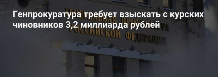 Генпрокуратура потребовала взыскать с курских чиновников 3,2 млрд рублей