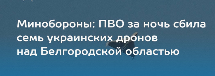 Минобороны: над Белгородской областью ночью сбили семь беспилотников