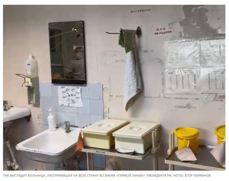 На «Прямую линию» президента дозвонился житель поселка Рефтинский Свердловской области Егор Перминов. Мужчина пожаловался на состояние местной больницы: «Зарплаты врачей оставляют желать лучшего. Не хватает персонала. Больница в полной разрухе. Ремонт еще советский. Просим нам помочь». В тот же день в Рефтинский отправился министр здравоохранения области. А позже СМИ отчитались, что капремонт в стационаре идет по плану, помощь жителям оказывают своевременно, зарплату медикам выплачивают полностью. Автор обращения рассказал «МК», что сейчас происходит в больнице и каким образом чиновники попытались «замылить проблему». Егор Перминов называет себя сельским активистом, но сразу поправляется: «Я такой не один в Рефтинском». — Я никого не информировал, что отправил видеообращение на «Прямую линию», — начал разговор Перминов. — Не надеялся, что на мое послание обратят внимание. Это как русская рулетка. Незадолго до мероприятия со мной связались. Попросили предъявить доказательства моих слов. Это логично, мало ли кто мог оставить сообщение. Я сходил в больницу, отснял помещения и отправил. О том, что Егор будет задавать вопрос, он узнал уже по факту. День в день. — Во время «Прямой линии» мне позвонили: «Сейчас Владимир Владимирович ответит на вопрос, и готовьтесь задать свой». Предупредили, что надо уложиться в одну минуту. Потом меня вывели в эфир. Честно говоря, раньше я считал, что на «Прямой линии» все заранее спланировано, слово дают только своим. Оказывается, это не так. Я человек из народа, не чиновник, не сижу в больших кабинетах, часто выступаю с критикой партии власти. ТАК ВЫГЛЯДИТ БОЛЬНИЦА, ПРОГРЕМЕВШАЯ НА ВСЮ СТРАНУ ВО ВРЕМЯ «ПРЯМОЙ ЛИНИИ» ПРЕЗИДЕНТА РФ. ФОТО: ЕГОР ПЕРМИНОВ В своем выступлении Перминов доложил президенту, что в здании больницы не производили ремонта с советских времен, на прием к узким специалистам не записаться, а качество консультаций оставляет желать лучшего. После «Прямой линии» в поселке случился переполох. — Через полтора часа в больницу съехались все СМИ. По всей видимости, администрация поселка заблаговременно сделала фотографии первого этажа больницы, где недавно провели ремонт. Вот эти снимки потом опубликовали издания. А меня выставили клеветником. Экскурсию для журналистов провели главврач больницы и старшая медсестра поликлиники. Корреспондентам показали отремонтированный первый этаж с розовыми диванами, информационным табло, регистратуру. Продемонстрировали несколько приличных медицинских кабинетов. Но вот дальше журналистов не пустили. — Лишь нескольким корреспондентам удалось прорваться за пределы отремонтированного этажа и рассказать правду, — добавляет Егор. КАДРЫ ИЗ ЗДАНИЯ БОЛЬНИЦЫ. РЕМОНТ БЫЛ СДЕЛАН НА ПЕРВОМ ЭТАЖЕ, НО ЕСЛИ ЗАГЛЯНУТЬ В ДРУГИЕ ПОМЕЩЕНИЯ, КАРТИНА ПУГАЕТ. ФОТО: ЕГОР ПЕРМИНОВ «Людей никто не слышит» На следующий день в больницу приехали проверяющие. — Не могу сказать, прокуратура это была или еще кто-то, меня в курс дела не вводили, — продолжает собеседник. — Но селяне сообщили мне, что в тот день закрыли кабинеты, где нет ремонта и оборудования. Пациентов туда не пропускали, врачей пересадили в другие комнаты. Как я понимаю, таким образом руководство стационара попыталось замылить проблему. В воскресенье Перминову удалось поговорить с сотрудницами приемн