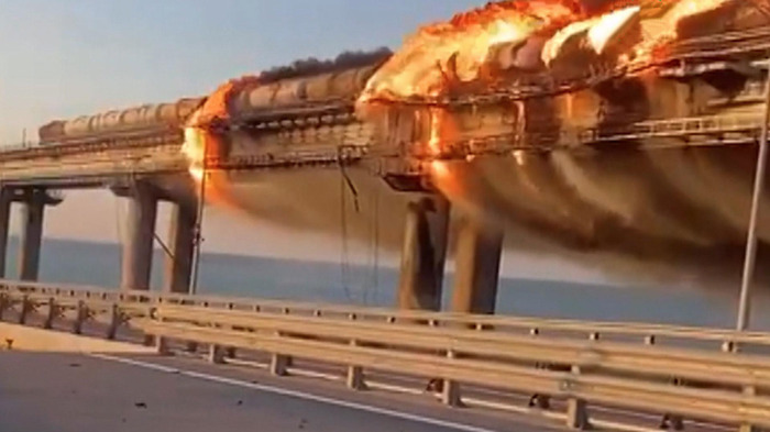 На Крымском мосту произошел подрыв грузового автомобиля