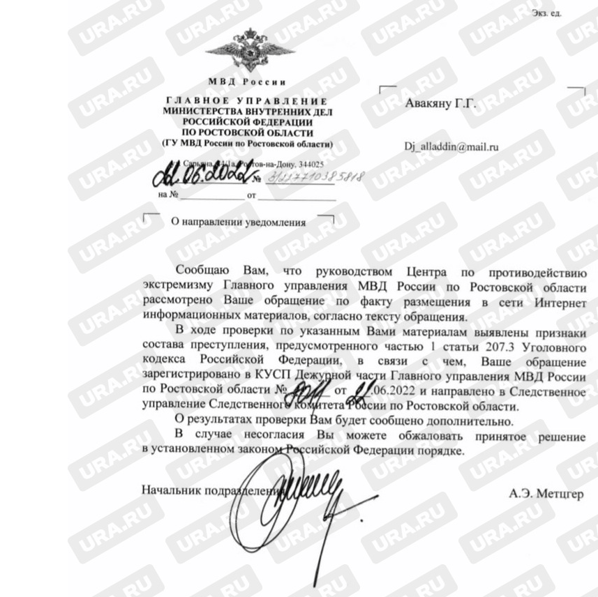 Блогер Гаспар Авакян пожаловался в Главное управление МВД РФ по Ростовской области на юмориста, шоумена Максима Галкина из-за «ложных высказываний» в отношении Вооруженных сил России. Об этом он сообщил на своей странице в социальной сети «Вконтакте». «Галкин Максим Александрович допустил высказывания, которые, по моему мнению, являются ложными по отношению к Армии Российской Федерации. Наши ребята охраняют наш покой, однако Галкин муж известной певицы Аллы Пугачевой так не считает. По данному факту я сделал обращение в ГУМВД и сегодня дело возбудили в отношении юмориста», — сообщил Гаспар Авакян. Центр по противодействию экстремизму ГУ МВД РФ по Ростовской области уведомил блогера, что обнаружили признаки преступления, предусмотренного частью 1 статьи 207.3 УК РФ (Публичное распространение заведомо ложной информации об использовании ВС РФ, исполнении государственными органами РФ своих полномочий). Потому, отмечается в документе, обращение Авакяна было направлено в Следственный комитет России. После начала спецоперации РФ на Украине Галкин с женой Аллой Пугачевой и детьми покинул Россию. Сейчас они живут в Израиле. Минкультуры Украины «помиловало» Галкина, исключив его из списка лиц, угрожающих нацбезопасности. Илья Бабаков | |