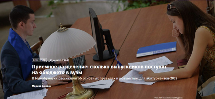 В Минобрнауки рассказали об основных правилах и новшествах для абитуриентов-2022 Марина Сонина Фото: РИА Новости/Алексей Куденко На бюджетные места в российские вузы в этом году смогут поступить 588 тыс. человек — это порядка 64% выпускников школ, сообщили в Минобрнауки. По сравнению с прошлым годом квота на бесплатное обучение увеличилась на 11,5 тыс. Приемная кампания в российские вузы началась 20 июня. Главное новшество этого года — в любой вуз документы можно подать онлайн — через портал «Госуслуги». Какие еще важные детали поступления необходимо знать абитуриентам и какие льготы предусмотрены для ребят из ДНР и ЛНР — в материале «Известий». Право выбора и личные достижения В понедельник, 20 июня, стартовала приемная кампания в российские вузы. В этом году для абитуриентов предусмотрено 588 тыс. бюджетных мест, что на 11,5 тыс. больше, чем в 2021-м, сообщила пресс-служба Минобрнауки. «Таким образом, более 64% выпускников российских школ могут претендовать на бюджетное отделение. В следующем учебном году будет выделено более 590 тыс. мест, следовательно, 67% выпускников российских школ смогут учиться бесплатно», — уточнили в ведомстве. Это значительно больше, чем раньше, отметила директор Центра экономики непрерывного образования РАНХиГС Татьяна Клячко. В прошлые годы показатель обозначался как «не менее 50%». — Кроме того, приоритет в плане бюджетных мест в этом году, как и в прошлом, отдан не столичным вузам, а региональным, — добавила она. Бюджетные места распределены с учетом потребностей экономики конкретной территории, подтвердили в Минобрнауки. Приоритетными направлениями подготовки станут инженерно-техническое (на них выделено 251 тыс. бюджетных мест), педагогическое (75,8 тыс.), медицинское (53,5 тыс.) и сельскохозяйственное (41,1 тыс.). «Все эти специальности нужны в регионах. Большинство бюджетных мест — в этом году 73% — получают региональные вузы и научные организации», — уточнили в министерстве. Приемная кампания 2022 года претерпела некоторые изменения, добавили в пресс-службе ведомства. Абитуриенты смогут выбрать несколько предметов по вступительному испытанию и использовать лучший результат. «К примеру, при поступлении на направление подготовки или специальность в области информационных технологий абитуриент может предоставить результат ЕГЭ по физике или информатике по своему усмотрению. Он, еще не зная результата ЕГЭ, подает документы. Вуз, узнав позже результаты, выберет лучший», — объяснили в Минобрнауки. Выпускники колледжа в этом году получили возможность поступать на основании профильных вступительных испытаний или по результатам ЕГЭ. При поступлении будут учитываться и другие заслуги, например золотой, серебряный и бронзовый знаки ГТО. Кроме того, свой перечень достижений, который принесет дополнительные баллы, есть практически в каждом вузе — он должен прилагаться к правилам приема. Чаще всего это победы или призовые места на профильных олимпиадах и в других конкурсах. Несмотря на предполагаемый выход России из Болонской системы, абитуриентов будут зачислять и в бакалавриат, и в магистратуру, и в специалитет, добавила Татьяна Клячко. Это связано с тем, что контрольные цифры на этот и следующий год уже приняты. — Мы, в РГГУ, уже получили первые заявления от абитуриентов, — рассказал ректор Российского государств