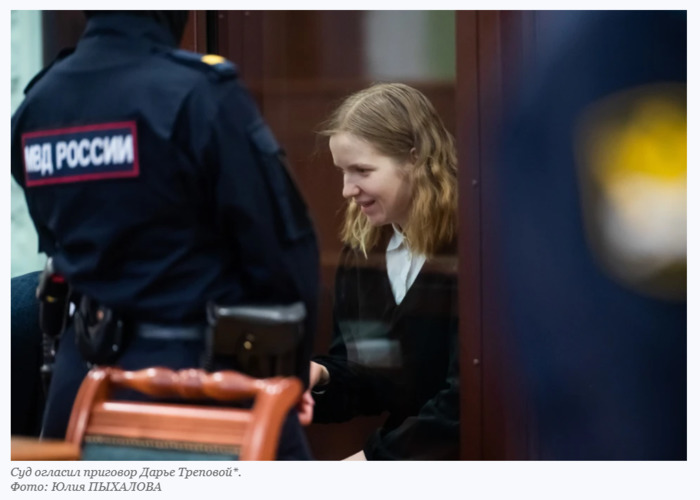 Александр ДЫБИН Суд огласил приговор Дарье Треповой*. Дарья Трепова*, устроившая теракт в кафе в Петербурге, проведет за решеткой 27 лет. Такой приговор ей вынесли сегодня на заседании Второго западного окружного военного суда. - Назначить Треповой наказание в виде 27 лет лишения свободы с отбыванием в колонии общего режима, со штрафом в 600 тысяч рублей, - огласил приговор судья Тимур Жидков. Кроме того, суд удовлетворил гражданские иски от пострадавших во время взрыва. С террористки взыскали 16 495 000 рублей. - Вам приговор понятен? - обратился к Треповой* судья. - Так точно, - холодно ответила она. К слову, ранее гособвинение просило для Треповой* 28 лет в колонии. Второму подсудимому по громкому делу Дмитрию Касинцеву, у которого Трепова пряталась после теракта, суд назначил 1 год и 9 месяцев колонии общего режима. Его признали виновным в укрывательстве террористки. Задержали прямо в зале суда. Напомним, трагедия произошла 2 апреля 2023 года в кафе на Университетской набережной в Петербурге. Во время творческой встречи военкора Владлена Татарского с поклонниками прогремел взрыв. Как установило следствие, бомба была спрятана в гипсовый бюст, который журналисту преподнесла 26-летняя Дарья Трепова*. Бывшая студентка-медик, работавшая в магазине одежды, за несколько месяцев до теракта вступила в переписку с украинским журналистом Романом Попковым*, а затем была завербована украинскими спецслужбами. Выжившие в теракте оделись в едином стиле. Вдова Татарского скрывала лицо и плакала. В течение нескольких месяцев Трепова* получала задания посещать мероприятия с участием Татарского и постараться обратить на себя его внимание, чтобы войти в доверие. По легенде она была студенткой петербургской академии художеств, причем, для этого будущая террористка украла личность реальной студентки вуза. Ее именем Трепова* представлялась на патриотических лекциях и семинарах с военкором. Последним заданием стало доставить Татарскому бюст с бомбой. В ходе суда Трепова* уверяла, что не знала о взрывчатке и думала, что внутри статуэтки спрятано подслушивающее устройство. Она вспоминала, что за секунду до взрыва военкор закрыл ее своим телом от ударной волны и, по сути, спас от смерти. В результате взрыва Владлен Татарский погиб на месте. Еще 52 человека получили травмы. Треповой* вменили три статьи УК РФ: «Терроризм», «Незаконное приобретение и хранение взрывчатки» и «Подделка документов». После взрыва предполагалось, что террористка должна улететь из страны. Но она испугалась и решила, что в аэропорту ее задержат. Трепова* приехала к знакомому своего мужа - репетитору Дмитрию Касинцеву. Террористка пробыла у него несколько часов, пока в квартиру к парочке не нагрянула полиция. Касинцев стал фигурантом уголовного дела, так как к нему несколько раз стучались сотрудники МВД, но он уверял их, что сидит дома один. Поэтому мужчину обвинили в укрывательстве преступления. Накануне приговора нарушила молчание вдова Владлена Татарского, которая на протяжении всего следствия и суда отказывалась от общения с журналистами. Она пообещала, что закончит все начатые дела мужа, чтобы память о военкоре жила вечно. - Моя жизнь без мужа потеряла краски, меня поймут вдовы. Но я до сих пор не хочу называться этим ужасным словом..., - сказала она в эмоциональном сообщении, опубликован
