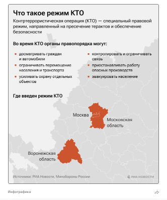 Режим контртеррористической операции будет отменен в ближайшее время, заявил пресс-секретарь президента РФ Дмитрий Песков. "КТО будет отменена в самое ближайшее время", - заявил Песков. "В связи с тем что процесс, связанный с нагнетанием напряженности, был развернут вспять, то будут все предпосылки для этого", - добавил он. ![]() | |