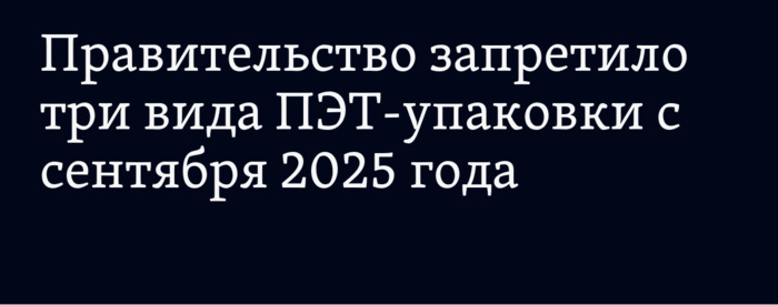 ТЕЛЕГРАММ замедляется.Вероятно скоро его заблокируют.Чтобы не потерять нас и получать оперативно информаци. подпишись на наши каналы в МАХ.Кто еще не подписался В полностью Российской сети МАХ на каналы ВОЕННЫЕ ПЕНСИОНЕРЫ ЗА РОССИЮ И ЕЕ ВООРУЖЕННЫЕ СИЛЫ: Канал для Военных пенсионерах без войны и политики, Военных пенсиях,пенсиях жен военных пенсионеров ,жизни военных пенсионеров и о способах прожить дольше : https://max.ru/voennyepen За Родину .Мы победим.: Оперативная информация О Спецоперации ,политике на канале: https://max.ru/join/aXh9SdoNhgk2rhy901ENolzCyoGLJhMgpon7E6np9n0 СРОЧНО ПОДПИСЫВАЙСЯ и ты будешь в курсе оперативных событий.НЕ пропусти!!! С 1 сентября 2025 года в России вступает в силу запрет на производство трех видов упаковки из полиэтилентерефталата (ПЭТ). Как пишет РБК, в стране будет запрещено производить и использовать ПЭТ-бутылки для пищевых продуктов (за исключением бутылок голубого, белого, зеленого и коричневого цветов, а также бесцветных), многослойные ПЭТ-бутылки и ПЭТ-упаковку с этикетками из поливинилхлорида (кроме термоусадочных этикеток). Министерство промышленности и торговли России предполагает, что данное решение поможет сократить потребление неутилизируемой ПЭТ-упаковки и перейти к более экологичным вариантам. Это должно снизить нагрузку на полигоны для отходов и уменьшить негативное воздействие на окружающую среду. Также в министерстве рассчитывают на рост объемов вторичной переработки и улучшение качества вторичного сырья благодаря исключению ПВХ-частиц, полиамидов из многослойной упаковки и других загрязняющих элементов. | |