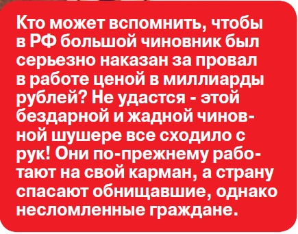 В советские времена на улицах городов можно было увидеть плакаты с наивным обещанием: «Коммунисты в ответе за все!» Они и тогда вызывали у граждан скептическую ухмылку. В постсоветской действительности пришедшие к власти либерал-реформаторы учли этот рискованный опыт и о своей ответственности никогда и нигде больше не заикались. Нутром чувствовали, куда заведет страну их «реформаторство». Президент на днях подписал закон, позволяющий через суд взыскивать деньги чиновников с банковских счетов, когда сумма поступления превышает официальный доход за последние три года, а законность получения этих средств не подтверждена. Хотя документ называется по госдумовским обычаям весьма туманно - закон «О внесении изменений в статью 26 Федерального закона «О банках и банковской деятельности» и Федеральный закон «О противодействии коррупции», но там много интересного. Если, скажем, при проверке доходов чиновника выяснится, что в течение года, предшествующего году представления указанных сведений, на счета проверяемого лица, его супруги (супруга) и несовершеннолетних детей в банках поступили денежные средства в сумме, превышающей их доход за отчетный период и предшествующие два года, то проверяющие лица обязаны истребовать у проверяемого лица сведения, подтверждающие законность получения этих денег. Если же достоверные сведения о законности получения средств не будут предоставлены, то деньги изымут в доход государства. Законом предусмотрен порядок проведения генпрокурором России и подчиненными ему прокурорами проверки достоверности представленных чиновником сведений. Сурово! Правда, в нашей нынешней реальности к проверяющему придется подключать контролирующего, но это другая история. Важно, что документ может - хотя бы теоретически - оказаться инструментом воздействия на коррумпированных чиновников, которые на фоне безумных западных санкций представляют собой очевидную пятую колонну, поскольку «берут» в ущерб стране. Владимир Путин давно озвучивал намерения жестко ограничить вольницу олигархов и прочих миллиардеров, способных «скачивать» большую часть госресурсов в свои карманы. Но, кажется, экстренные события последних дней активировали данный процесс. Однако, когда речь об ответственности за содеянное, то здесь не обойтись без персоналий. Все знают, кто затеял вложение российских золотовалютных резервов в американские и европейские облигации под копеечные проценты. Господин Алексей Кудрин в бытность министром финансов объяснял, что спасает эти средства от разворовывания в РФ, но подставил их под воровство Запада. Знающие люди утверждают, что без персонального гешефта такие большие сделки не совершаются. И Кудрин не зря получил от Европы звание «лучшего министра финансов». А глава Минфина Антон Силуанов сообщил, что «половина золотовалютных резервов Банка России заморожены из-за санкций», но об этом лет пять предупреждали эксперты. Их не слушали либеральные господа из правительства. Профукали 300 млрд долларов. Кто-то понес за это ответственность?! Далее. В разгар нагнетания западных санкций Центробанк поднял ключевую ставку более чем вдвое, и экономист, академик Сергей Глазьев оценил это действие как принятое по рецептам МВФ, то есть наших на сегодня стратегических оппонентов. «Это ловушка в том смысле, что в