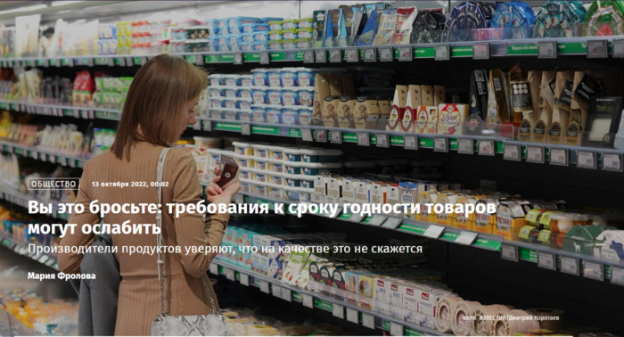 Мария Фролова Российские производители продуктов обратились в Минпромторг с просьбой порекомендовать крупным торговым сетям ослабить требования к сроку годности. Сейчас они готовы закупать товары с остаточным сроком не ниже 60–65%, и это приводит к утилизации большого объема качественной продукции. «Известия» разобрались, как такие перемены могут повлиять на продовольственный рынок и почему от этого выиграют покупатели. Жесткие требования Ослабить требования к сроку годности продуктов Минпромторг попросила ассоциация производителей и поставщиков продуктов питания «Руспродсоюз». Федеральным ритейлерам предлагают установить минимальный порог остаточного срока годности в 45% для товаров длительного срока хранения (от года и выше) и в 50% — для товаров меньшего срока. Под остаточным сроком годности подразумевается период до момента, когда продукт нужно утилизировать. Сейчас федеральные сети готовы закупать продукты с остаточным сроком годности в среднем 60–65%. Например, если срок годности товара 730 дней, то его не принимают уже в момент, когда до наступления срока остается 439 дней. При этом средний срок продажи таких товаров в магазинах составляет около 50 дней. «Всё это не способствует формированию складских запасов продукции, необходимой для бесперебойных поставок (…), и ведет к утилизации большого объема продовольствия», — говорится в письме, адресованном министру промышленности и торговли Денису Мантурову. Проблему усиливает и отсутствие планирования закупок со стороны торговых сетей — от ритейлеров часто идут хаотичные всплески заказов. Нововведения не сказались бы на качестве товаров — они касались бы только жестких требований, которым «не может соответствовать объем складских запасов», отмечается в документе, оказавшемся в распоряжении «Известий». Закупки с запасом Как говорит в беседе с «Известиями» исполнительный директор ассоциации «Руспродсоюз» Дмитрий Востриков, российские торговые сети стараются закупать продукты с запасом годности в 60–65%, потому что «излишне перестраховываются», боясь не продать товар через условные 1,5 года. Другая возможная причина — невнимательный анализ собственной статистики «уходимости» продукции. Именно она показывает, что средний срок продажи товара с полки не превышает 50 дней, а отнюдь не 500, которые некоторые сети закладывают в требование к поставщикам в качестве обязательного остаточного срока годности (ОСГ). — Однако далеко не все сети выставляют такое требование: например, у одного из лидеров рынка ОСГ составляет 45%, что говорит о том, что и другие сети могут работать на таких условиях, — говорит Дмитрий Востриков. По словам эксперта, закупка торговыми сетями продуктов с длительным заказом годности для поставщиков имеет свои минусы. Один из них — это практика хаотичного всплеска, когда у поставщика одномоментно заказывают, к примеру, полугодовой запас продукции. Выпустить его так быстро почти невозможно, а складские запасы с учетом «правила 60–65%» по запасу годности сеть просто не примет. — Это значит, что поставщик получит штраф за недопоставку и одновременно ему придется утилизировать большое количество годных продуктов, что неприемлемо ни для производителей, ни для потребителей, ни для экономики страны, — объясняет специалист. Интересно, что существующая з