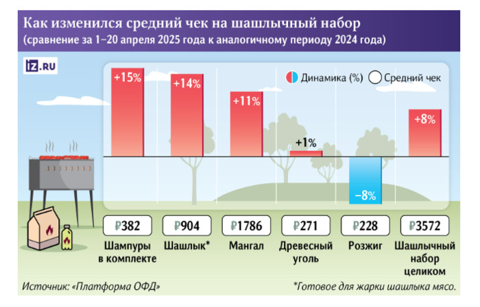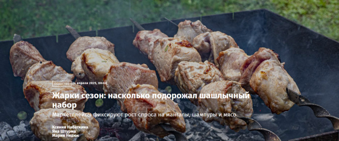 ТЕЛЕГРАММ замедляется.Вероятно скоро его заблокируют.Чтобы не потерять нас и получать оперативно информаци. подпишись на наши каналы в МАХ.Кто еще не подписался В полностью Российской сети МАХ на каналы ВОЕННЫЕ ПЕНСИОНЕРЫ ЗА РОССИЮ И ЕЕ ВООРУЖЕННЫЕ СИЛЫ: Канал для Военных пенсионерах без войны и политики, Военных пенсиях,пенсиях жен военных пенсионеров ,жизни военных пенсионеров и о способах прожить дольше : https://max.ru/voennyepen За Родину .Мы победим.: Оперативная информация О Спецоперации ,политике на канале: https://max.ru/join/aXh9SdoNhgk2rhy901ENolzCyoGLJhMgpon7E6np9n0 СРОЧНО ПОДПИСЫВАЙСЯ и ты будешь в курсе оперативных событий.НЕ пропусти!!! В Телеграмм создана группа " Военные пенсионеры за Россию и ее ВС. Мы победим". У кого есть Телеграмм просим вступить в нее. Там много интересного, срочного, очень оперативная информация, а также чего нельзя помещать в ОДНОКЛАССНИКАХ и на сайте. Вступить можно по ссылке: Военные пенсионеры за Россию и ее ВС. Мы победим "https://t.me/voenpenszaRossiu" Очень большая просьба НЕ ОТПИСЫВАТЬСЯ ОТ КАНАЛА, Канал работает в тестовом режиме. Мы стараемся понять, что Вам будет интересно читать и как работать дальше. Пишите, что бы Вам хотелось читать в ТЕЛЕГРАММ. Хоть в любой теме на сайте, хоть в Телеграмм. Чтобы не раздражали уведомления их можно ОТКЛЮЧИТЬ. Кого раздражают уведомления в Телеграмм их можно отключить. Отключить уведомления можно нажав на надпись ОТКЛЮЧИТЬ УВЕДОМЛЕНИЯ внизу Маркетплейсы фиксируют рост спроса на мангалы, шампуры и мясо Ксения Набаткина Яна Штурма Мария Недюк Набор для приготовления шашлыка, включающий мясо для жарки, мангал, комплект шампуров, уголь и розжиг, за год подорожал на 8%, подсчитали для «Известий» в аналитическом центре «Чек Индекс» компании «Платформа ОФД». На него придется потратить 3,5 тыс. рублей. В этом году россияне чаще всего выбирают для приготовления на мангале свинину, курицу и баранину. Приобретают мясо чаще на рынках и в магазинах, но и онлайн-площадки фиксируют рост спроса на него, а также на мангалы и шампуры. Врачи настоятельно рекомендуют избегать переедания шашлыка — это может негативно сказаться на самочувствии и привести к обострению хронических заболеваний печени, желчного пузыря и поджелудочной железы. Сколько стоит набор для шашлыка В этом апреле траты на набор для приготовления шашлыка составили 3,5 тыс. рублей, сообщили «Известиям» в аналитическом центре «Чек Индекс» компании «Платформа ОФД». В эту сумму входит покупка готового мяса для жарки (вес не уточняется), комплекта шампуров, мангала, древесного угля и розжига. Средний чек оказался выше прошлогоднего на 8%. Наиболее заметно подорожали шампуры — на 15%, а также мясо — на 14% (траты на него составляют около четверти стоимости набора). Теплая погода в начале весны способствовала росту спроса на товары для шашлыков — в марте он оказался на 30–35% выше прошлогоднего уровня, отметили аналитики. — В апреле спрос слегка «сдулся», как это закономерно происходит после первого месяца активного периода жарки мяса. Кроме того, сказалось и влияние Великого поста накануне Пасхи, — добавили в «Чек Индексе». Замаринованное мясо чаще всего покупают в точках несетевой торговли — на рынках и в небольших магазинах. Наиболее популярны в этом году у любителей шашлыка свинина, курица и баранина. Покупательница выбирает продукты в отделе фруктов и ов