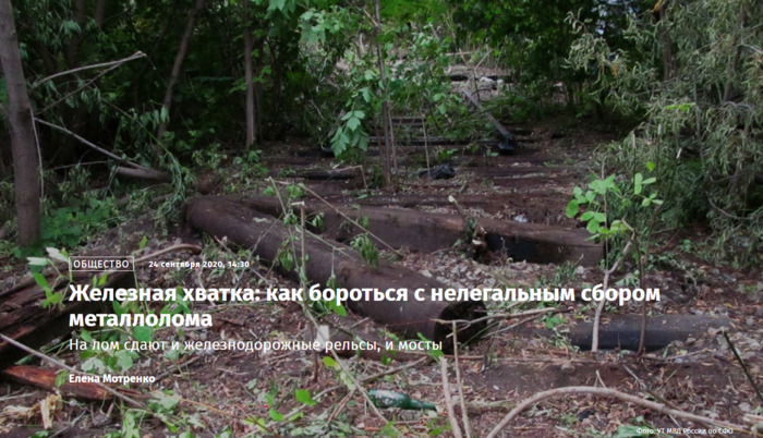 На лом сдают и железнодорожные рельсы, и мосты Елена Мотренко Фото: УТ МВД России по СФО Житель Красноярского края украл ни много ни мало 15 т рельсов и сдал их в пункт сбора металлолома. А безработный, ранее судимый житель Солнечногорска украл, но всё же не успел сдать в пункт приема металлолома гараж жительницы Химок. В Петербурге тем временем полиция спустя полгода задержала угонщика «КамАЗа» ― мужчина угнал грузовик с неохраняемой стоянки и сдал его на металлолом. О том, что грозит желающим сдать на металлолом всё, что плохо лежит, как приструнить нелегальных сборщиков и навести порядок в отрасли ― в материале «Известий». Забор, рельсы, «башмаки» В Канском районе Красноярского края по горячим следам задержали 36-летнего местного жителя: мужчина, на минуточку, самостоятельно разобрал больше 200 м железнодорожных рельсов со стрелочными переводами на неиспользованном пути и распилил их на части. «На специально нанятой технике похищенное было перевезено в пункт приема металлолома, ― сообщает пресс-служба управления МВД на транспорте по Сибирскому федеральному округу. ― За 15 т металла злоумышленник получил около 150 тыс. рублей, которые рассчитывал потратить на свои нужды». Зато сумма ущерба оказалась в разы больше ― почти на миллион. Возбуждено уголовное дело по статье «Кража». А в Липецкой области разбираются в причинах схода с рельсов восьми вагонов грузового поезда. Пострадавших нет, урона окружающей среде тоже не нанесено, но из-за ЧП несколько пассажирских поездов пришли с опозданием на три-четыре часа. Примечательно, что грузовой поезд перевозил металлолом, и, как сообщили в Московском межрегиональном следственном управлении на транспорте СКР, предварительная причина аварии ― как раз хищение лома. «Причиной схода вагонов явились противоправные действия неустановленного лица, совершавшего хищение лома черного металла, перевозимого грузовым поездом, путем его сбрасывания на железнодорожную насыпь», ― отметили в ведомстве. Сошедшие вагоны грузового поезда в Липецкой области, 16 сентября 2020 года Фото: Московское межрегиональное СУ на транспорте СК РФ Хроники кражи лома можно, кажется, продолжать бесконечно. Крадут провода и опоры ЛЭП (так, в КЧР «Россети Северный Кавказ» потеряли почти 8 тыс. м алюминиевого провода), чугунные ограды с могил. В Орске 12-летний школьник хотел заработать на каникулах и прихватил с железной дороги тормозные «башмаки». Досталось всем: маму ребенка привлекли к административной ответственности за ненадлежащее исполнение родительских обязанностей, в адрес железнодорожного предприятия направлено представление ― плохо смотрят за имуществом. В Казани тем временем воришки украли секцию забора. Весь прошлый год жители жаловались и на внешний вид, и на установку ограждений где надо и не надо, так что неудивительно, что в соцсетях охотников за металлоломом в шутку нарекли «санитарами города». Кстати, в прошлом году отмечалась тенденция ― пропадали целые мосты. Весной недалеко от Кировска местные жители заметили, что исчез давно не используемый железнодорожный мост через реку Умба ― его по-тихому распилили и увезли в неизвестном направлении. Осенью лишились пешеходного моста жители деревни Деденево в Подмосковье. В общем, за такой металл люди, к счастью, не гибли, но ради металлолома, похоже, 