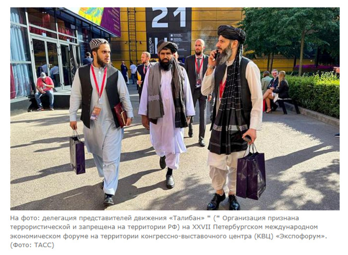 Ирина Мишина Материал комментируют: Александр Сафонов Перед тем, как начать писать эту статью, я обзвонила с десяток экспертов, которые присутствуют сейчас на ПМЭФ с одним единственным вопросом: «Снят ли с Талибана*, представители которого приехали на ПМЭФ, статус террористической организации?». К сожалению, определенный ответ мне никто дать так и не смог. Зато в Едином федеральном списке организаций, в том числе иностранных и международных, признанных в РФ террористическими, который ведет ФСБ, Талибан на данный момент значится 11-м пунктом. Тем временем, Казахстан 3 июня официально, устами президента Токаева, объявил, что снимает с Талибана статус террористической организации. Причина — необходимость развивать с Кабулом торгово-экономическое сотрудничество, потому что режим талибов — «долгосрочный фактор». В России относительно статуса Талибана пока все остается на уровне деклараций о намерениях. «Действительно, было заявление, что мы снимаем с них статус террористической организации, но оформлено это юридически или нет — не понятно, — пояснил „СП“ политолог Сергей Марков, находящийся сейчас на ПМЭФ. — Талибы тут присутствуют, выглядят они конечно достаточно экзотично, но держатся уверенно. Слышал, что даже якобы были достигнуты какие-то двусторонние договоренности, связанные с борьбой с наркотрафиком. Кажется, мы также договорились и о сотрудничестве в сельском хозяйстве, в частности, о продаже Афганистану сельскохозяйственного оборудования». Но не за тракторами, разумеется, приехали талибы на ПМЭФ. Речь о том, что Афганистан хочет закупать у России нефть и зерно, идет давно. Какие дивиденды Россия получит от сотрудничества с Кабулом? Сегодня Талибан — реальная власть в Афганистане. Это стало возможным после решения Байдена вывести американские войска с афганской земли. Марионеточное правительство США оказалось слишком слабым, в результате талибы взяли под контроль все провинции страны и без боя вошли в Кабул. Но в итоге Афганистан оказался еще более отрезанным от мирового сообщества, чем прежде. Почему у Талибана все так сложно в международных отношениях? Ведь Кабул по сути не признан международным сообществом. С таким вопросом мы обратились к политологу-востоковеду Дмитроию Бридже. — Талибан — достаточно радикальное течение. Там более жестко по сравнению с другими мусульманскими странами действуют законы шариата. В стране применяются внесудебные расправы, например, забивание женщин камнями до смерти за прелюбодеяния, запрет на их обучение, лечение у врачей-мужчин и даже появление на публике без сопровождения мужа или родственников мужского пола. Под запретом телеканалы, искусство, компьютеры. Судебная система основана на шариате. И тем не менее Китай официально признал Талибан, приняв дипломатические полномочия от посланника талибов в январе 2024 года. Помимо Китая, де-факто связи с властями Талибана поддерживают Пакистан, Туркменистан, Россия, Иран, Мьянма, Катар, Эритрея, Венесуэла, Беларусь, Бурунди, Эфиопия, Гвинея, Никарагуа, Северная Корея, Зимбабве, Казахстан, Сирия, Малайзия, Узбекистан и Объединенные Арабские Эмираты. «СП»: Но ведь Москва поддерживает также контакты с военными противниками Талибана. В июне прошлого года неофициальные консультации в Москве провел бывший шеф афганской разведки и в