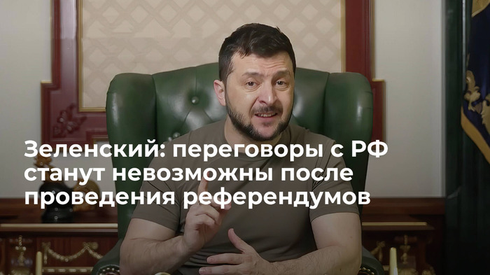 Президент Украины Владимир Зеленский в интервью телеканалу CBS назвал «фикцией» референдумы в ДНР, ЛНР, а также в Херсонской и Запорожской областях. «Российское правительство может официально объявить, что референдум завершен, и будут объявлены результаты», — сказал Зеленский. Он также добавил, что это сделает невозможным в любом случае продолжение каких-либо дипломатических переговоров с президентом РФ Владимиром Путиным. Зеленский отметил, что Путин «очень хорошо об этом знает», а происходящее является «очень опасным сигналом». Кроме того, он призвал администрацию американского президента Джо Байдена признать Россию государством-спонсором терроризма и продолжать оказание военной помощи Украине. Зеленский указал на то, что украинским силам нужны артиллерийские ракетные системы HIMARS, артиллерия и системы ПВО. | |