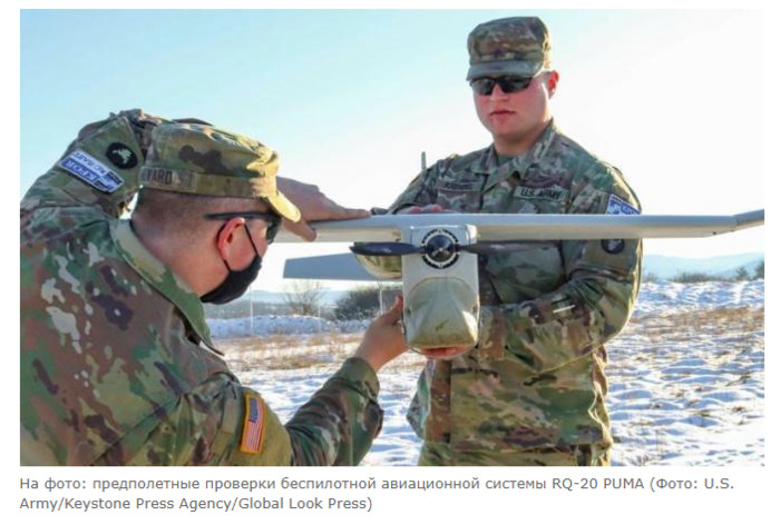 Виталий Орлов Во второй половине декабря прошлого года в Сети появилась информация о перехвате на территории Луганской Народной Республики беспилотного летательного аппарата RQ-20 Puma производства США. Дрон стоимостью $250 тысяч был посажен казачьим спецназом при помощи антидронового ружья и впоследствии передан специалистам одного из профильных российских научно-исследовательских институтов. Штатными говорунами Повiтряних сил Украины по понятным причинам эта информация не подтверждается, однако не верить ей оснований нет. Действительно, еще в июне на запорожском направлении было отмечено применение разведывательными подразделениями укровермахта американских БПЛК RQ-20 Puma, поставленных в рамках апрельского пакета помощи правительства США, которым был подписан почти двадцатимиллионный контракт с разработчиком и производителем этого беспилотника — компанией AeroVironment Inc (Арлингтон, штат Виргиния). Кроме собственно БПЛА, в перечень поставки были включены комплекты целевых нагрузок для наблюдения, разведки и целеуказания, а также стартовый пакет запасных частей. Сама партия оказалась неожиданно малочисленной. Несмотря на обладание, как минимум, тысячей беспилотников этого семейства, американцы передали представителям «самой сильной армии Европы» всего шестнадцать RQ-20 Puma. Правда, в пользу хозяина колонии говорит то, что ВСУ получили обновленную версию комплекса RQ-20A Puma AE, отличающуюся модернизированными аккумуляторными батареями, обеспечивающими увеличенную продолжительность полета, но тем не менее. Для понимания ценности трофея, доставшегося российским инженерам, обратимся к другим техническим и эксплуатационным характеристикам беспилотника RQ-20A, причем сделаем это в разрезе его боевого потенциала на украинском театре боевых действий. Базовой платформой для его создания стал БПЛА FQM-151 Pointer. Кроме того, в процессе его разработки использовались технические решения, реализованные в конструкции малого разведывательного беспилотника RQ-11 Raven. Первый полет «Пумы», предназначенной для ведения разведывательных и наблюдательных действий, а также патрулирования и корректировки огня, датируется 2007 годом. Беспилотный летательный аппарат имеет достаточно скромные массогабаритные характеристики: длину 1,4 метра, размах крыла 2,8 метра и собственную массу 6,1 килограмма. RQ-20 Puma оснащен малошумным электрическим силовым агрегатом, позволяющим беспилотнику развивать максимальную скорость до 83 км/ч (крейсерская — 37 км/ч) и подниматься на высоту до 150 метров. Его радиус действия составляет пятнадцать километров от базовой станции, а максимальная продолжительность полета порядка двухсот минут. Полезная нагрузка представлена инфракрасной и оптико-электронной камерами, размещенными на турели, и двухосной гиростабилизированной многосенсорной системой, объединяющей камеры с шестикратным увеличением еще двух типов: обычные и тепловизионные. Наличие такого оборудования позволяет обнаруживать объекты и цели вне зависимости от времени суток и погодных условий. Запуск американского беспилотника осуществляется, что называется, с руки, а процесс посадки предполагает поимку БПЛА в специальную сеть. В экстренных случаях, под которыми вероятно, понималось несанкционированное принуждение изделия к посадке, производитель гарантиров