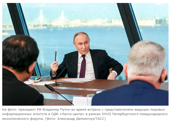 Владимир Путин провёл встречу с руководителями ведущих мировых информационных агентств. В беседе приняли участие представители информагентств из Азербайджана, Белоруссии, Казахстана, США, Узбекистана, Китая, Ирана, Великобритании, Турции, Кореи, Италии, Германии, Японии, Испании и Франции. Россию представлял генеральный директор ТАСС Андрей Кондрашов.
