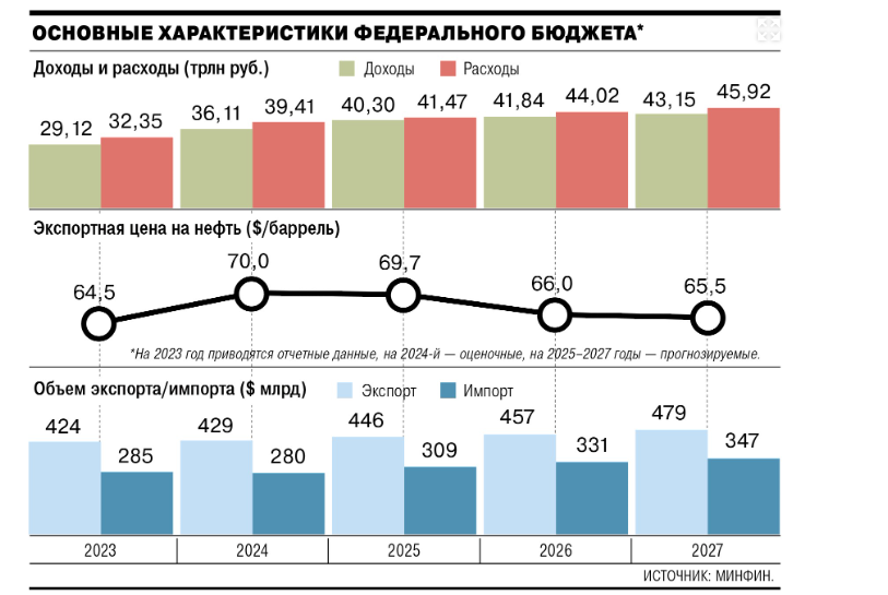 ТЕЛЕГРАММ замедляется.Вероятно скоро его заблокируют.Чтобы не потерять нас и получать оперативно информаци. подпишись на наши каналы в МАХ.Кто еще не подписался В полностью Российской сети МАХ на каналы ВОЕННЫЕ ПЕНСИОНЕРЫ ЗА РОССИЮ И ЕЕ ВООРУЖЕННЫЕ СИЛЫ: Канал для Военных пенсионерах без войны и политики, Военных пенсиях,пенсиях жен военных пенсионеров ,жизни военных пенсионеров и о способах прожить дольше : https://max.ru/voennyepen За Родину .Мы победим.: Оперативная информация О Спецоперации ,политике на канале: https://max.ru/join/aXh9SdoNhgk2rhy901ENolzCyoGLJhMgpon7E6np9n0 СРОЧНО ПОДПИСЫВАЙСЯ и ты будешь в курсе оперативных событий.НЕ пропусти!!! Доходы в 2025 году будут расти быстрее расходов Белый дом внес на рассмотрение Госдумы бюджетный пакет, включающий в себя проект федерального бюджета на 2025–2027 годы и «Основные направления налоговой и бюджетной политики» на трехлетку. Идеология главного финансового плана — накопление достаточного объема ликвидных резервов на фоне неблагоприятной внешней среды и переход к полноценному следованию «бюджетному правилу». Структурно же объявленные приоритеты расходования бюджетных денег — социалка, оборона и технологии. Бюджет-2025 получился достаточно «жестким» — при росте доходов на 12% к этому году расходы увеличиваются только на 5%, а относительно размера ВВП и вовсе сокращаются. Правительство в понедельник в установленный законодательством срок (до 1 октября) внесло в Госдуму бюджетный пакет — проект бюджета на 2025–2027 годы и большое количество увязанных с ним законопроектов и материалов. Второй год подряд депутаты уже не позируют на фоне тележки, груженной тысячами присланных правительством страниц,— в прошлом году бюджетный пакет впервые был внесен в электронном виде (на носителе), а в этом — еще и в порядке межведомственного электронного документооборота. Общий подход к финансовому плану на трехлетку его основной автор Минфин сформулировал в приложенных к бюджету «Основных направлениях бюджетной, налоговой и таможенно-тарифной политики». Отмечается, что бюджет формируется в сложных внешних условиях и при сохранении санкций, поэтому главное для обеспечения его устойчивости — достаточный объем ликвидных резервов и следование долгосрочным «бюджетным правилам». Это значит, что после довольно интенсивной «накачки» экономики деньгами в 2024 году (вызывавшей в том числе тревогу и отвечающего за инфляцию ЦБ) Минфин на 2025-й намечает попытку бюджетной консолидации. Если в этом году, по свежей оценке Минфина, доходы относительно 2023-го увеличатся сразу на 24%, а расходы на 18%, то в 2025-м прирост по обеим частям бюджета должен быть существенно меньшим: плюс 12% по доходам (до 40,3 трлн руб.) и лишь плюс 5% — по расходам (до 41,5 трлн руб.). Получаемое при таком раскладе снижение общего дефицита более чем вдвое — до 0,5% ВВП после 1,1% в 2024 году — пока подтверждает стремление правительства к «жизни по средствам». Отметим, что в более объективном выражении — в процентах к растущему размеру экономики — расходы, как следует из пояснительной записки к проекту бюджета, вовсе сокращаются — с 20,1% ВВП в 2024 году до 19,3% в 2025-м. Доходы в этом измерении при этом немного, но вырастут — с 18,4% до 18,8% ВВП. Надежда на высокие доходы позволила Минфину добиться реализации своего давнего желания — перехода к полноценному использованию «бюджетного правила».