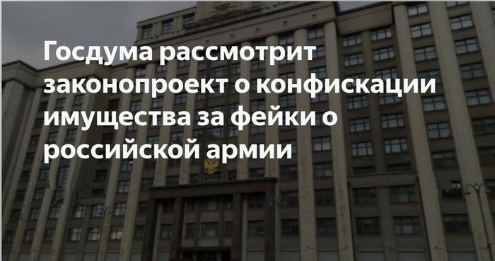 ТЕЛЕГРАММ замедляется.Вероятно скоро его заблокируют.Чтобы не потерять нас и получать оперативно информаци. подпишись на наши каналы в МАХ.Кто еще не подписался В полностью Российской сети МАХ на каналы ВОЕННЫЕ ПЕНСИОНЕРЫ ЗА РОССИЮ И ЕЕ ВООРУЖЕННЫЕ СИЛЫ: Канал для Военных пенсионерах без войны и политики, Военных пенсиях,пенсиях жен военных пенсионеров ,жизни военных пенсионеров и о способах прожить дольше : https://max.ru/voennyepen За Родину .Мы победим.: Оперативная информация О Спецоперации ,политике на канале: https://max.ru/join/aXh9SdoNhgk2rhy901ENolzCyoGLJhMgpon7E6np9n0 СРОЧНО ПОДПИСЫВАЙСЯ и ты будешь в курсе оперативных событий.НЕ пропусти!!! Проект поправок к УК РФ о конфискации имущества за фейки о российской армии внесен в Государственную думу. Осужденные по этим статьям могут также лишиться почетных званий и государственных наград. Чуть раньше спикер ГД Вячеслав Володин пояснял, что целью нового законопроекта является наказание «негодяев, в том числе деятелей культуры, которые поддерживают нацистов, льют грязь на нашу страну, солдат и офицеров, участвующих в СВО». Проект поправок вводит дополнительный квалифицирующий признак для таких составов, как распространение заведомо ложной информации о вооруженных силах (ст. 207.3 УК) и публичные призывы к осуществлению деятельности, направленной против безопасности государства (ст. 280.4). Предлагается предусмотреть возможность конфискации использованного при совершении преступлений имущества, а также распространить конфискацию на деньги, ценности и иное имущество, предназначенное для финансирования деятельности, направленной против безопасности государства. Планируется ужесточить наказание и за призывы к подобной деятельности, если они совершены в корыстных целях или по мотивам политической, национальной или религиозной ненависти. В таком случае они переходят в разряд тяжких преступления, а максимальный срок лишения свободы возрастает до шести лет. | |