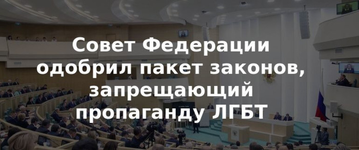 СОВЕТ ФЕДЕРАЦИИ ОДОБРИЛ ПАКЕТ ЗАКОНОВ О ЗАПРЕТЕ ПРОПАГАНДЫ ИЗВРАЩЕНИЙ