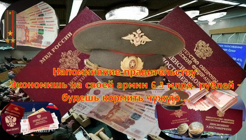 Государство рублем раскололо армию на действующих военных и военных, находящихся в запасе и отставке — на действующих и «бывших» в понимании законодательной, исполнительной и судебной власти.