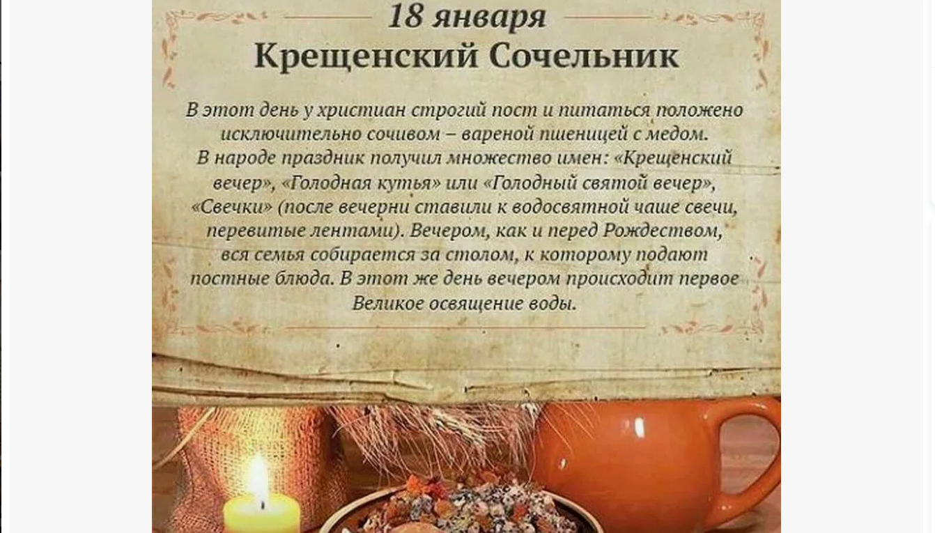 Крещенский сочельник 2025 отмечается 18 января. Он завершает период рождественских праздников. В этот день проводятся главные приготовления к Крещению.