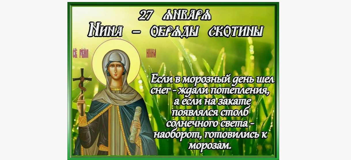 Народный праздник Нина – обряды скотины отмечается 27 января 2025 года (дата по старому стилю – 14 января). Верующие православной церкви в этот день чтут память равноапостольной Нины, просветительницы Грузии.
