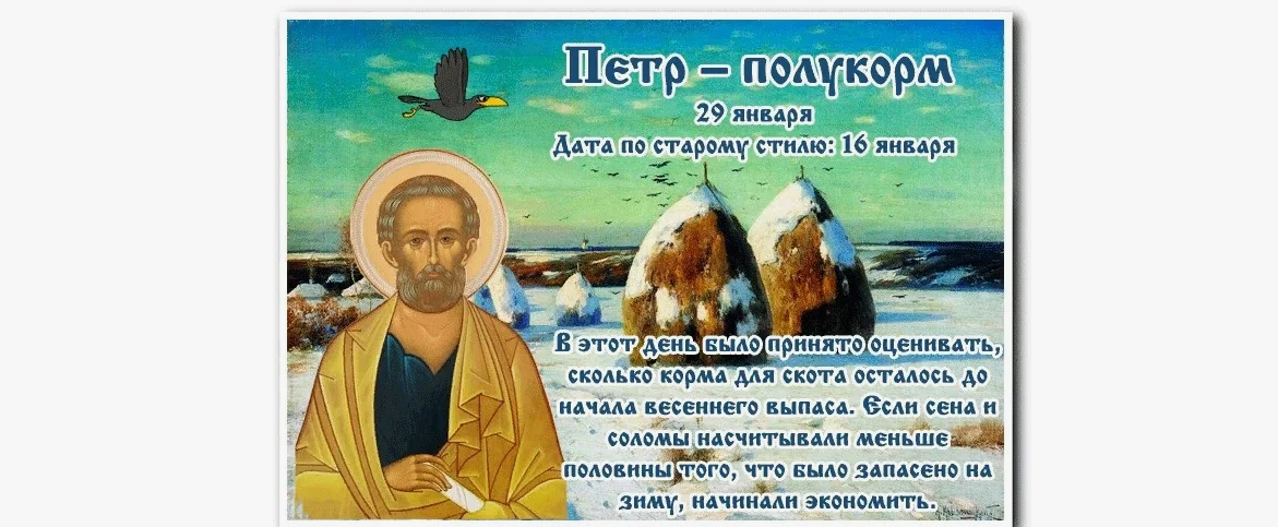 Народный праздник Петр-полукорм отмечается 29 января 2025 года (дата по старому стилю – 16 января). Верующие православной церкви в этот день чтут память святого апостола Петра, первого Папы Римского.