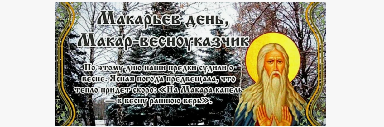 Народный праздник Макарьев день отмечается 1 февраля 2025 года (по старому стилю – 19 января). В церковном календаре это дата почтения памяти преподобного Макария Великого.