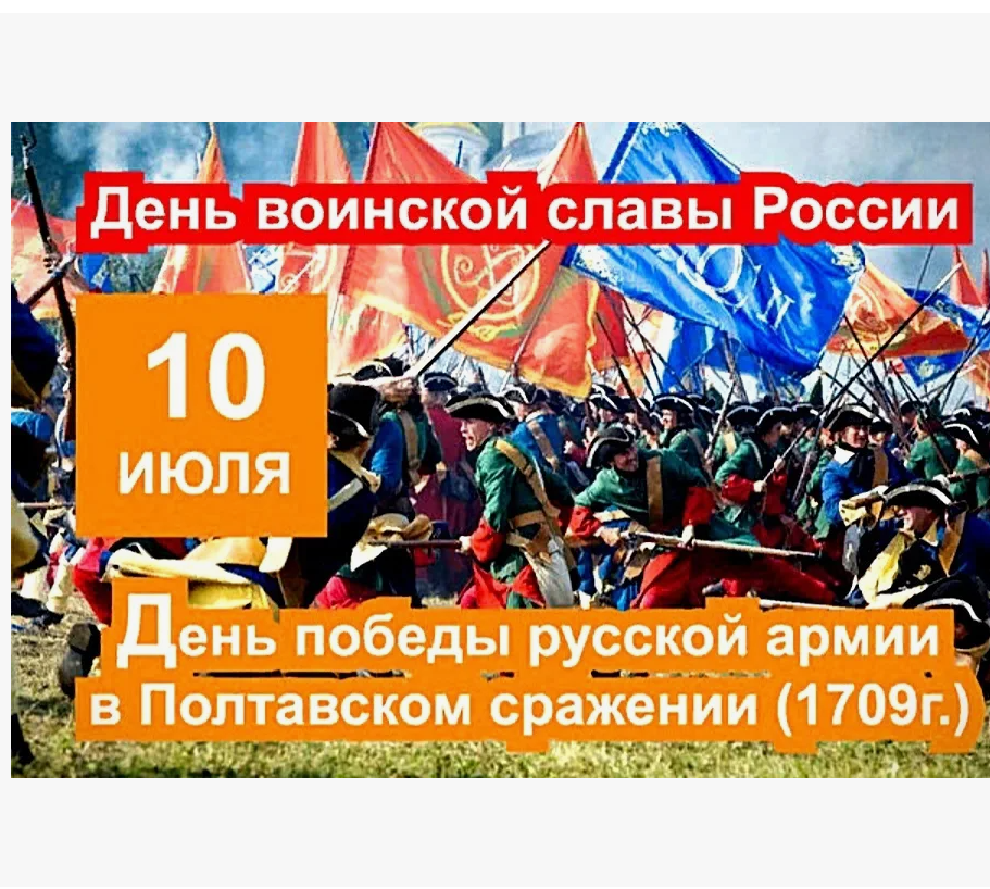 8 июля (27 июня по ст. ст.) 1709 года произошло генеральное сражение Северной войны 1700‑1721 годов - Полтавская битва. В честь этой победы установлен День воинской славы России, который отмечается 10 июля.