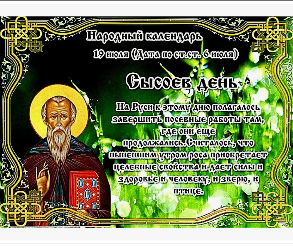 Народный праздник Сысоев день отмечается 19 июля 2024 года (по старому стилю – 6 июля). По православному календарю это дата почитания памяти преподобных Сисоя Великого и Сисоя, схимника Печерского.