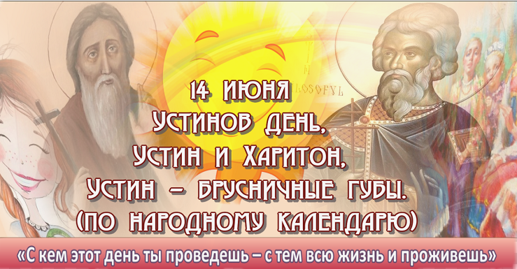 Народный праздник Устинов день отмечается 14 июня 2024 года (по старому стилю – 1 июня). В православном церковном календаре это дата почтения памяти двух святых с одним именем: Иустина Философа и Иустина Римского, а также других мучеников, которые пострадали в одно и то же время.