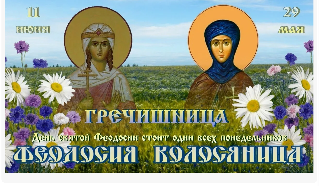 Народный праздник Феодосия Колосяница отмечается 11 июня 2024 года (дата по старому стилю – 29 мая). В этот день верующие православной церкви чтут память преподобномученицы Феодосии Константинопольской, девы.