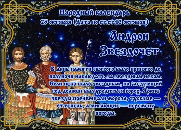 25 октября 2023 года (дата по старому стилю – 12 октября) отмечается народный праздник в честь памяти трех святых мучеников – Прова, Тараха и Андроника.