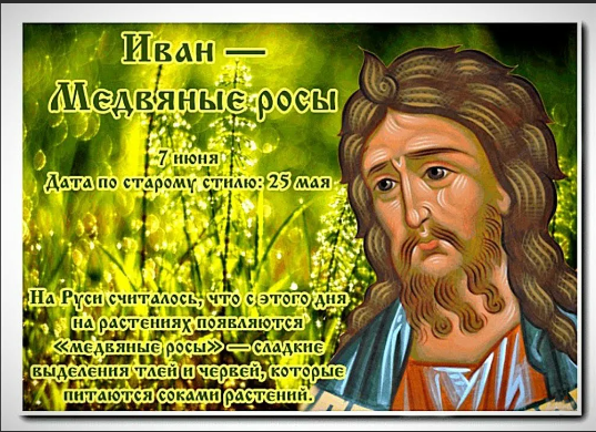 Народный праздник Иван – Медвяные росы отмечается 7 июня 2023 года (дата по старому стилю – 25 мая). Православная Церковь этого числа вспоминает третье обретение главы Пророка, Предтечи и Крестителя Господня Иоанна.