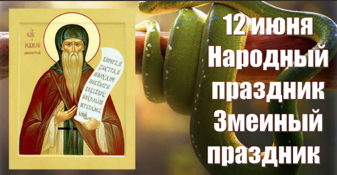 Змеиный праздник отмечается 12 июня 2023 года (по старому стилю – 30 мая). По церковному календарю это дата почтения памяти преподобного Исаакия Далматского, игумена.