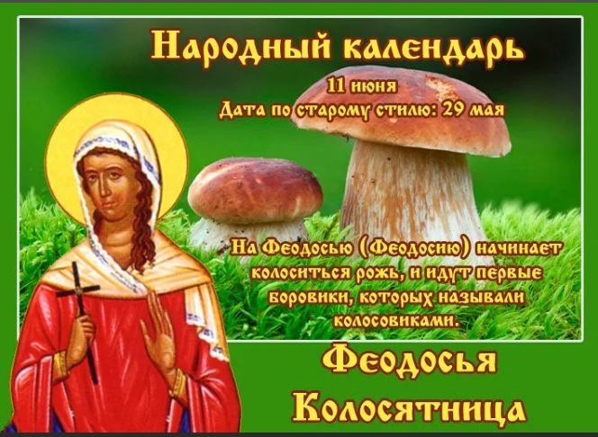 Народный праздник Феодосия Колосяница отмечается 11 июня 2023 года (дата по старому стилю – 29 мая). В этот день верующие православной церкви чтут память преподобномученицы Феодосии Константинопольской, девы.