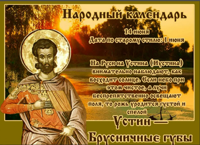 Народный праздник Устинов день отмечается 14 июня 2023 года (по старому стилю – 1 июня). В православном церковном календаре это дата почтения памяти двух святых с одним именем: Иустина Философа и Иустина Римского, а также других мучеников, которые пострадали в одно и то же время.