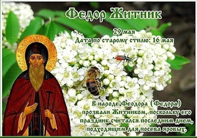 Народный праздник Федор Житник отмечается 29 мая 2023 года (дата по старому стилю – 16 мая). По церковному календарю в этот день почитают преподобного Феодора Освященного, игумена.