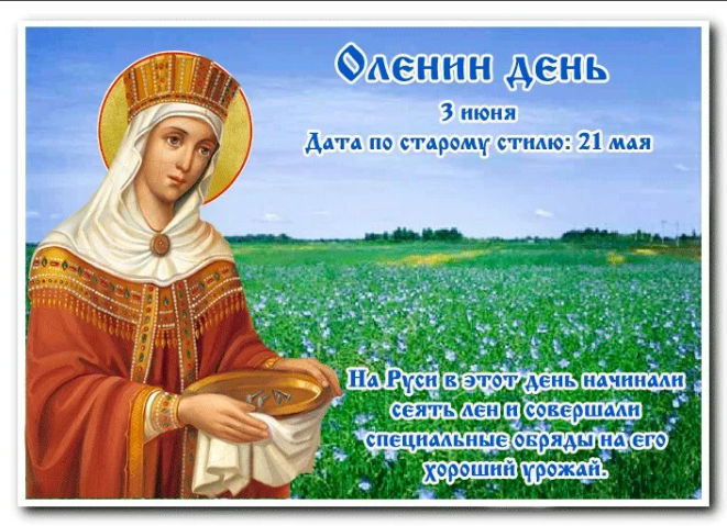 Народный праздник Оленин день отмечается 3 июня 2023 года (по старому стилю – 21 мая). По церковному календарю это дата почтения памяти святой равноапостольной Елены Константинопольской, царицы.